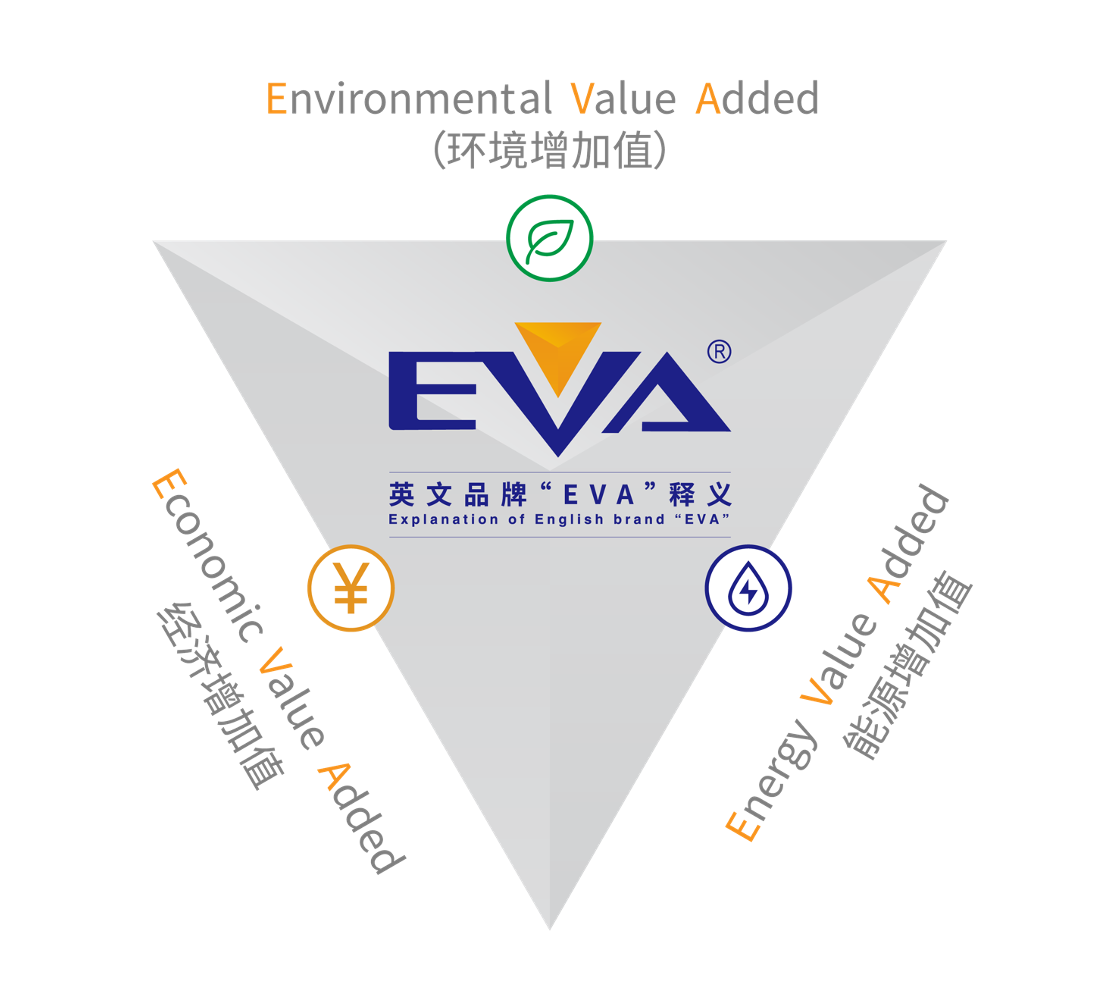 EVA connotes the three values - environmental, economic and energy goals and expresses its decision to follow the eternal theme of sustainable development of human beings in the world and the concept of continuous cultivation of corporate governance and a leading role in the growth of enterprise value by virtue of a strong visual impact image.